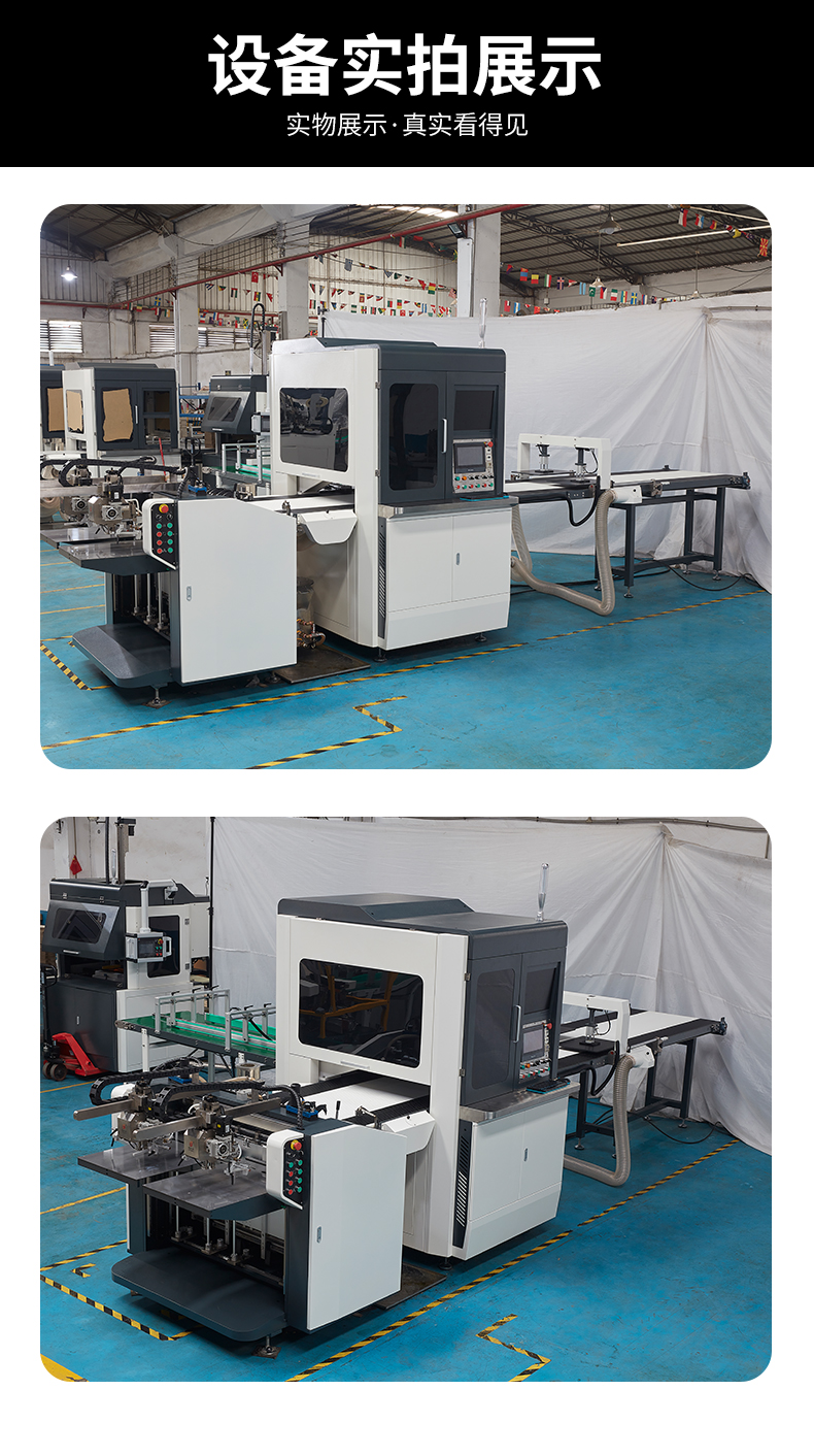 適合各種天地蓋的自動生產(chǎn)線,故障診斷功能,自動吸送面紙和送灰板功能,高精度凸輪飛達送紙,整機采用松下伺服控制系統(tǒng),視覺定位系統(tǒng)及機器抓取,采用雅馬哈機器人,采用全新循環(huán)溫控上膠系統(tǒng),采用高清攝像頭定位可精準定位天地盒、灰板、皮殼。